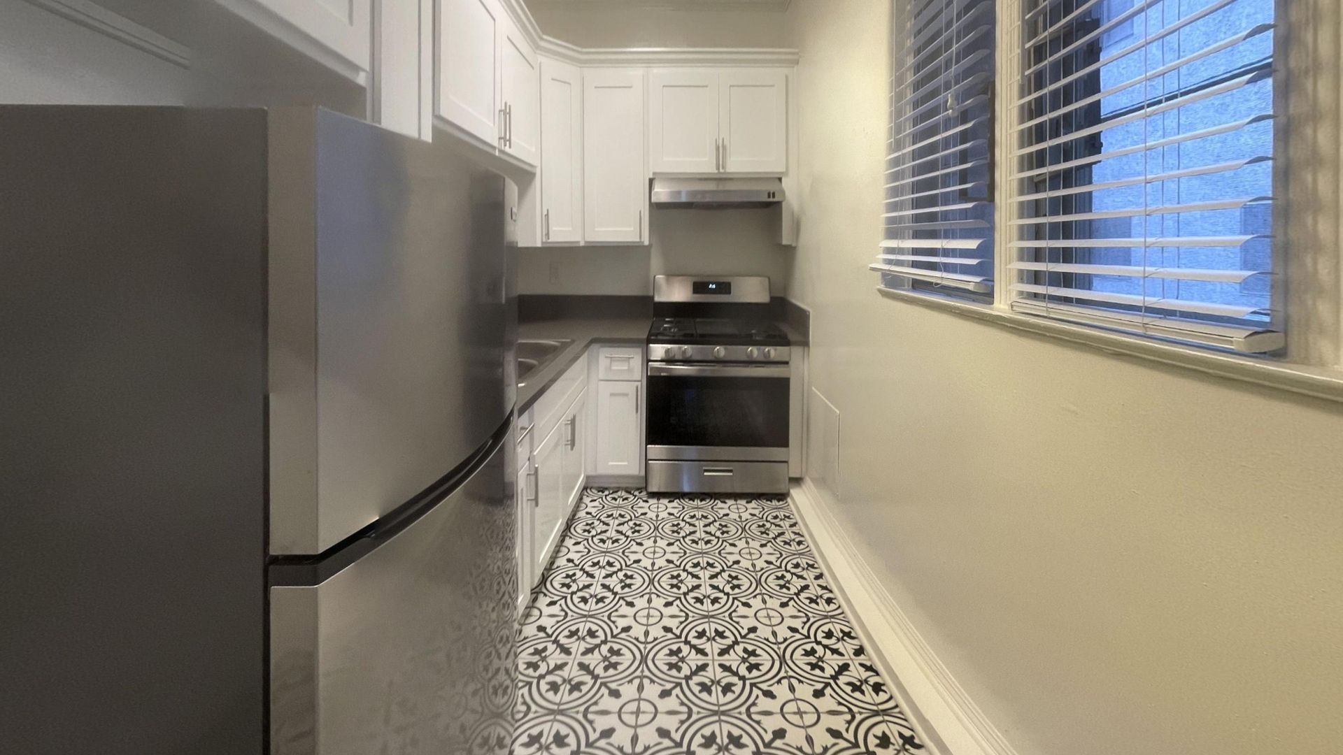 La Chandelle is a charming, Art Deco building. The unit has been renovated to provide a stylish urban living space right between Mid-Wilshire and Koreatown. This renovated apartment offers refinished hardwood flooring, exposed brick walls, new appliances, SS refrigerators, quartz countertops, designer light fixtures, ceiling fans, and pedestal sinks, among other improvements.